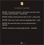 Geralt will accept a few choices of dialogue. Choosing the correct options will yield the most feel and crowns during the play, but Dudu will always show his face in the cease. Successful lines will total 500